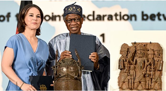 The first two bronzes, one representing the head of a king and the other representing a king and his four assistants, will be personally taken by Nigeria’s Foreign Minister Zubairu Dada and Culture Minister Lai Mohammed, who were present at the ceremony.