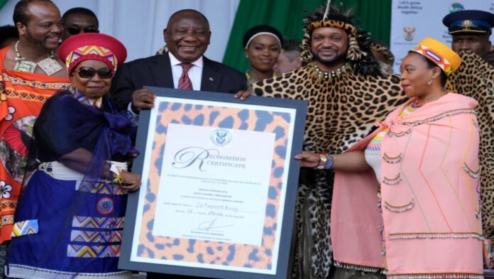 The leader of South Africa’s largest ethnic group was crowned in August but needed official Ramaphosa recognition to gain full access to government resources and support.